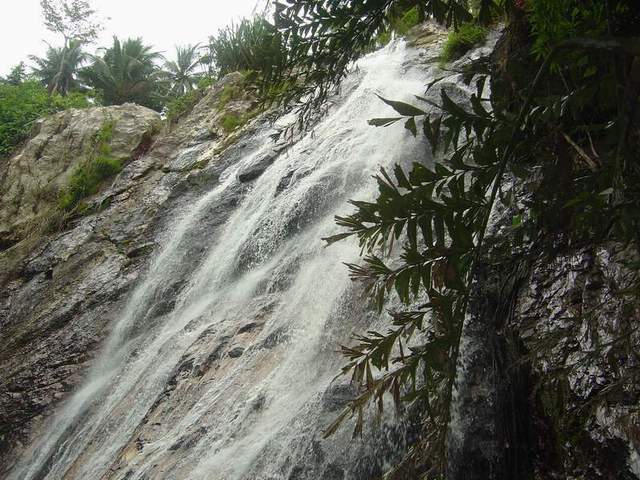 บนเกาะมีน้ำตกหลายแห่ง ในภาพเป็นน้ำตกหน้าเมือง ซึ่งถ่ายภาพได้ไม่สวยงามเท่าไร เนื่องจากมีคนเยอะมาก ต้องเบียดเข้าไปใกล้ๆน้ำตกเพื่อถ่ายภาพ นอกจากนำตกหน้าเมืงแล้วก็ยังมีน้ำตกหินลาด น้ำตกวานร ที่แวะเข้าไปเหมือนกัน แต่เข้าไปไม่ถึง เนื่องจากสมาชิกเดินเบียดผู้คนเข้าไปไม่ไหว
