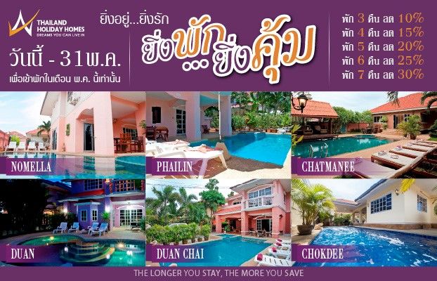 ข้อมูลเพิ่มเติม : http://www.thailandholidayhomes.co.th/โปรโมชั่นบ้านพักพัทยาจอมเทียนพฤษาคม-2557-70.html