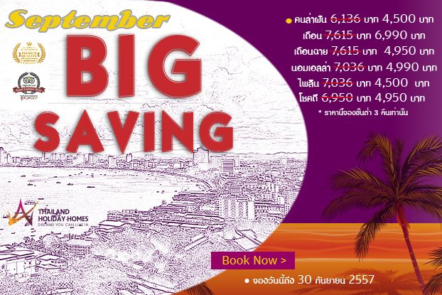ข้อมูลเพิ่มเติม : http://www.thailandholidayhomes.co.th/โปรโมชั่นบ้านพักพัทยารายวันกันยายน-2557-75.html