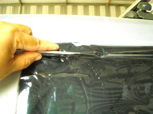เมื่อรีดเสร็จดูด้านนอกว่ามีตรงใหนยังมีฟองอากาศก็เอาออกให้หมด ครับ ค่อยๆทำ งานนี้จะห้ามใช้น้ำนาเช็ดกระจกนะครับ เพราะจะมีผลกับฟิมล์ ในระยะยาวครับ