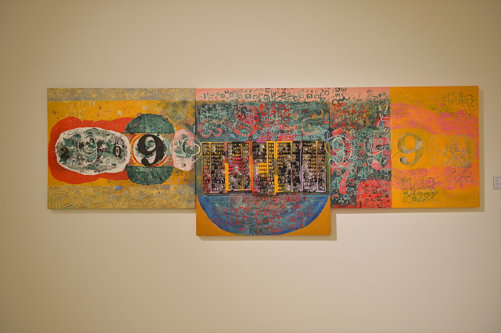 จิตกรรมและสื่อผสม ชื่อผลงาน ลูกคิด ๑ , โดย ศิลปินแห่งชาติปี 2540 คุณ กมล ทัศนาญชลี