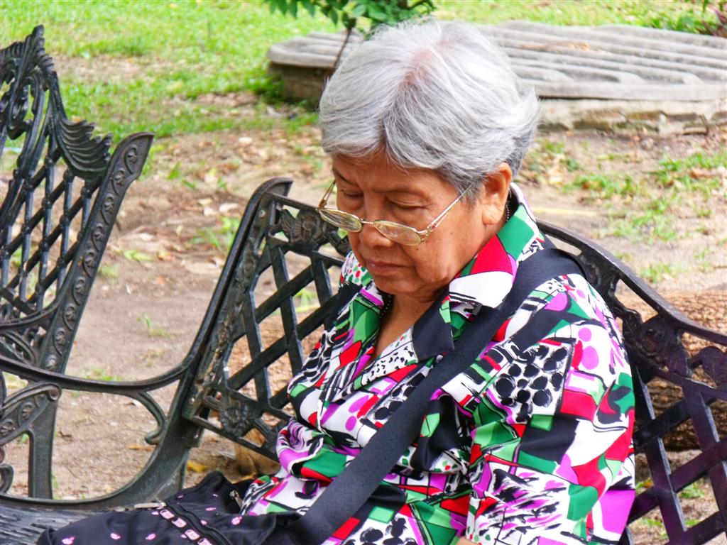 คุณยาย ท่านนี้ กำลังพักผ่อน ที่เขาดิน