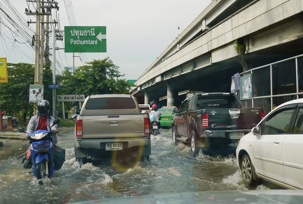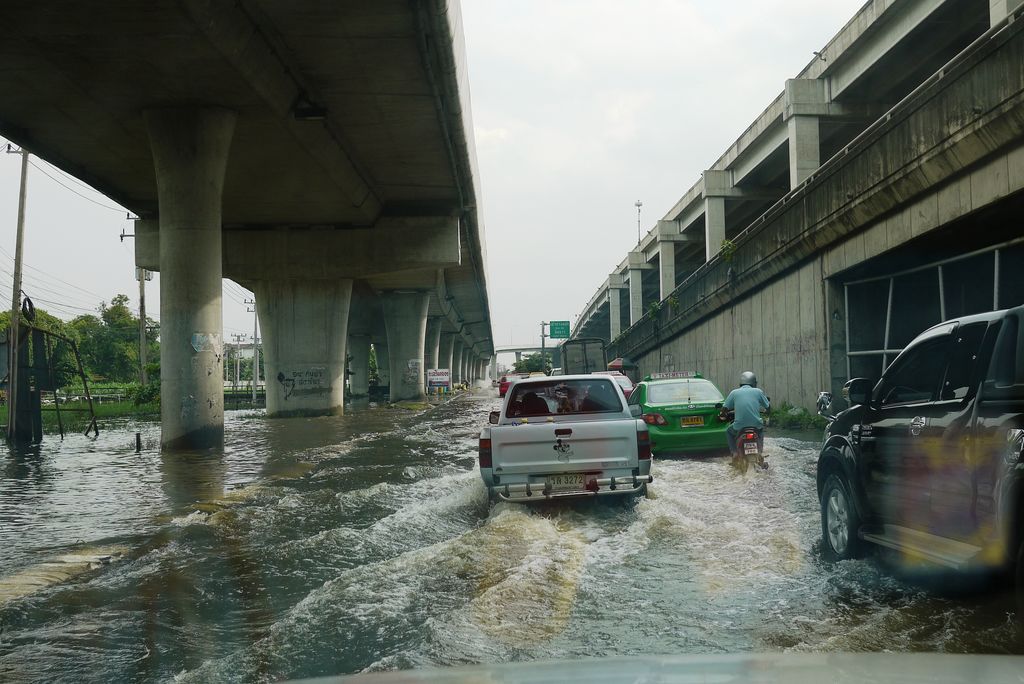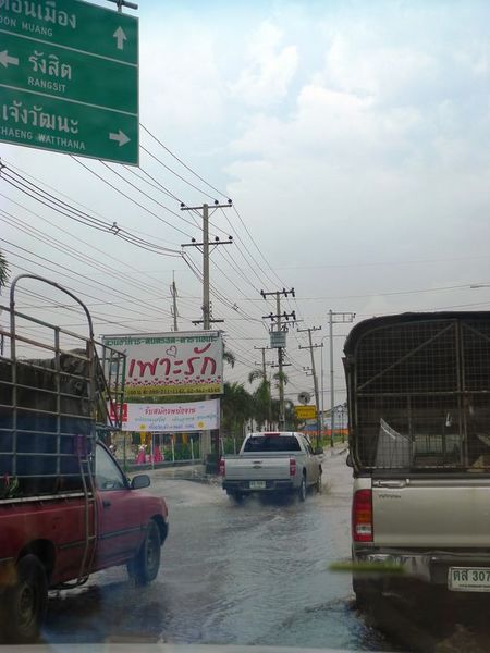 ทำอะไรไม่ได้แล้ว เปลี่ยนอะไหล่ก็ไม่ได้ ร้านปิดชั่วคราวไม่กล้ารับรถลูกค้าไว้กลัวน้ำท่วมรถ ซื้ออะไหล่แล้วก็ขึ้นทางด่วนกลับดอนเมือง ลงทางด่วนเลี้ยวซ้ายจะเข้าดอนเมือง ผ่านคันคลองชลประทานเจอน้ำท่วมขังอีก เพราะเจอฝนตกหนัก