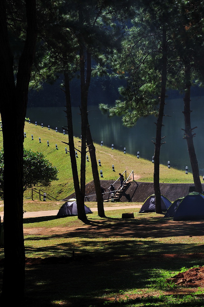 ป่าสนทำให้ร่มรื่นและอากาศเย็นสบายขึ้นมาก (ด้านนอกแดดแรงไร้น้ำใจเลยครับ)