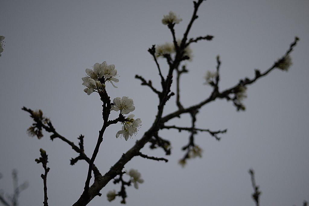 หยดน้ำเกาะตามกิ่งต้นท้อ