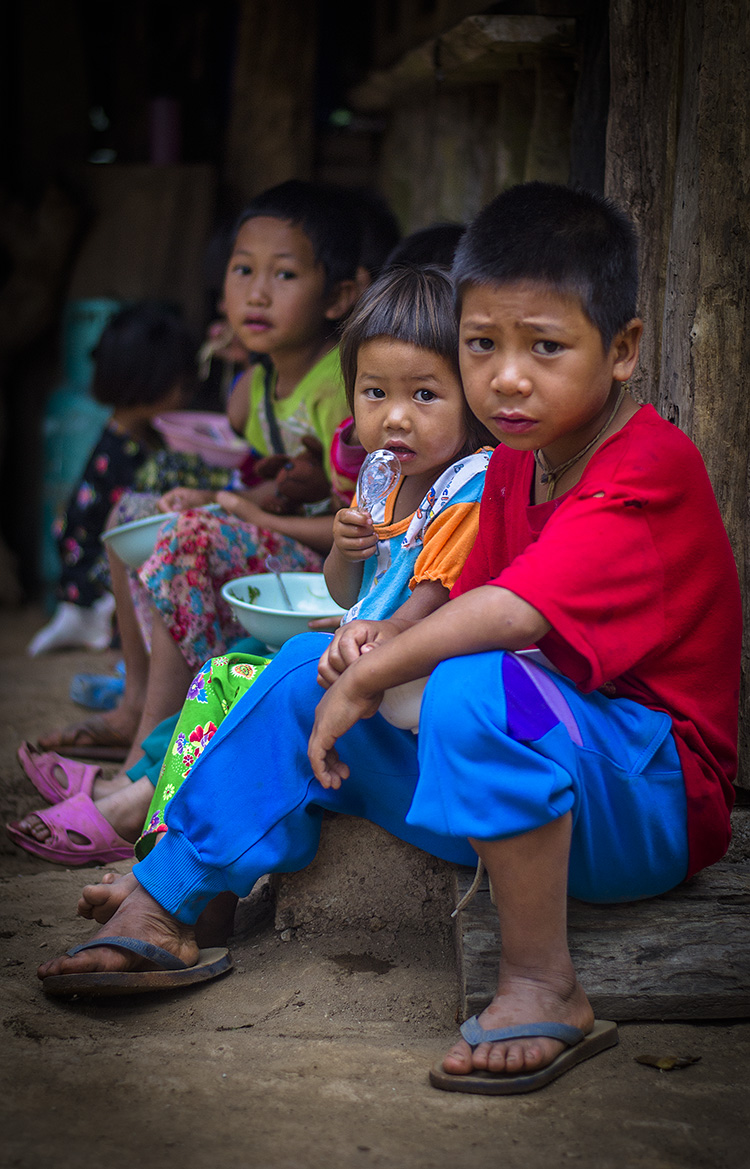 เด็กๆขึ้นมาจากหมู่บ้านมูเซอ