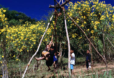 คำตอบที่ 1 เด็กเล่นชิงช้า จริงๆแล้วการโล้ชิงช้าเป็นประเพณีของชาวอีก้อนะครับแต่นี่คงเป็นเด็กซนไปเล่น