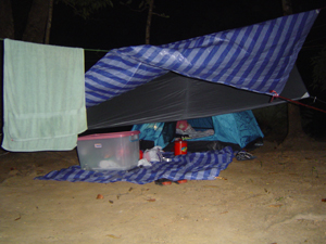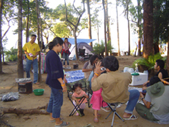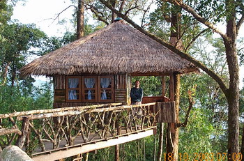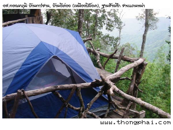ผมเพิ่งโทร 01-3820359 ติดต่อได้ ชื่อพนักงาน อช.ทองผาภูมิ(ชื่อจันทร์เพ็ญ) ให้ข้อมูลนักท่องเที่ยวที่จะไปพัก และไม่นำรถไปเอง ก็สามารถนั่งรถประจำทางไป อช.ฯ ในเบื้องต้น ให้โทรหมายเลขข้างบน เพื่อจองบ้านพัก(บ้านทาร์ซาน 1-4 , บ้านริมผา 1-4) เมื่อได้บ้านพักตามวันที่ว่างไปแล้ว ก็ให้ติดต่อซื้อตั๋วรถเมล์ที่สถานีขนส่งสายเหนือ/หมอชิต จาก กทม.-ทองผาภูมิ(มีวิ่งเที่ยว 05.00 , 06.00 น. ใช้เวลาวิ่งถึงทองผาภูมิ ~ 5.30 ชม. ถึงประมาณ 10.30 - 12.00.) เมื่อถึงทองผาภูมิ(ตลาดทองผาภูมิ) ให้มองหาร้าน 7-elven จะเป็นท่ารถสองแถวสีเหลือง จอดอยู่ให้สังเกตรถสองแถว ที่เขียนข้างรถว่า ทองผาภูมิ-บ้านอีต่อง ขึ้นไปเลยครับ ค่ารถคนละ 60 บาท ใช้เวลาวิ่งถึง อช.ประมาณ 1.30 ชม. รถสองแถวจะวิ่งประจำออกจากทองผาภูมิ วันละ 3 เที่ยว คือ 10.30 , 11.30 และ 12.30 น. จาก อำเภอทองผาภูมิถึงถึง อช.ทองผาภูมิ ~ 55 กม.( ทองผาภูมิ - แยกบ้านไร่ 30 กม. แยกบ้านไร - อช. 25 กม. ทางช่วงสุดท้าย 25 กม. วิ่งอยู่บนเขาตลอด) ขากลับรถสองแถวจากบ้านอีต่อง - ทองผาภูมิ วิ่งประจำวันละ 2 เที่ยว คือ 7.00 และ 8.30 น. สามารถติดต่อสอบถามเวลารถสองแถวที่แน่นอนได้ เบอร์นี้ครับ 01-5751917(ลุงจันทร์) 01-3613127(คุณทูน) เพื่อกันความผิดพลาด ได้รับทราบข้อมูลจากผมแล้ว ให้เช็คสอบอีกครั้ง หรือหลายครั้งก่อนเดินทางนะครับ ผมสอบถามถึงสภาพดินฟ้าอากาศ เดือน พค.49 นี้ฝนตกเกือบทุกวัน มีหมอกทุกวัน แต่ทางไปน้ำตกจ๊อกกระดิ่น ไม่อนุญาตให้นำรถยนต์เข้าไป กำลังทำทางอยู่ ใครจะไปต้องเดินด้วยเท้าอย่างเดียวระยะทางจากที่พักไปไกลครับ ส่วนทางเดินศึกษาธรรมชาติและชมพระอาทิตย์ขึ้นหรือตก สามารถเดินเท้าจากที่พักไปได้ไม่ไกลระยะทาง 1-2 กม. เท่านั้น ขอให้สนุกกับการพักบ้านต้นไม้ และท่องเที่ยวป่าไม้บ้านเรานะครับ