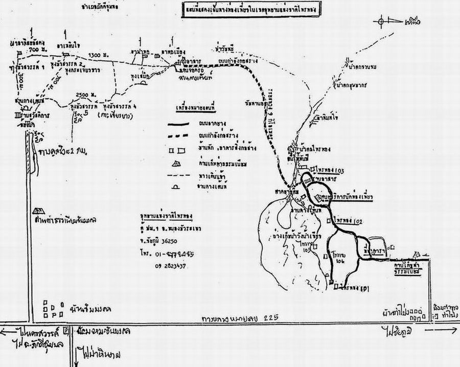 คำตอบที่ 1 ถนนสาย 225 มาจากตัว จ.ชัยภูมิ ผ่านหนองบัวระเหวผ่านทางเข้า อ.ช.ไทรทองมาที่แยกบ้านซับมงคลมาถึงแถวๆอ.ช.ไทรทองลองถามชาวบ้านแถวนั้นครับ