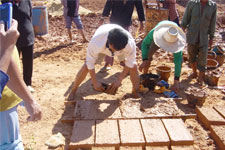 13.00 น. เรียนรู้เรื่องการทดสอบดิน, ทำก้อนอิฐดิน การก่อ, การฉาบพร้อมดูตัวอย่างบ้านดิน