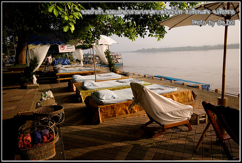 สำหรับที่เชียงของคุณลองไปถามคุณวัชระ(ตำมิระรีสอร์ท)อยู่ติดแม่น้ำโขงห่างจากท่าเรือบั๊กประมาณ1กม. บอกขอกางเต็นข้างรีสอร์ทของพี่เขาติดกับแม่น้ำโขงเลย ลองสอบถามดูนะครับแล้วขอใช้บริการห้องน้ำของรีสอร์ท ก็ให้ค่าบริการเล็กน้อยคุณวัชระเจ้าของหนังสือ"คนขี่เสือ"ผู้โด่งดังในแวดวงเสือภูเขาเป็นคนใจดีครับ