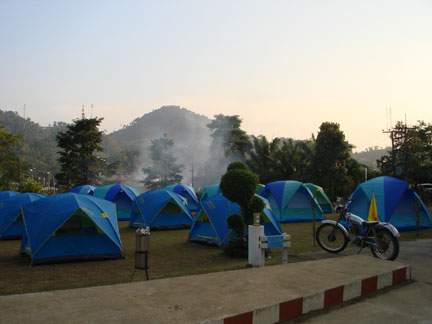 คำตอบที่ 13 มีเต็นท์กางหน้าสนามที่ว่าการอำเภอพะโต๊ะให้นักท่องเที่ยวได้เช่า เต็มสนามเลย เพียบ