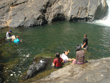 คำตอบที่ 30 มีแอ่งน้ำขนาดใหญ่ สามารถลงว่ายน้ำได้ ตรงกลางลึก บริเวณรอบ ๆ มีโขดหินให้เกาะยืนได้ น้ำเย็นเฉียบครับผม