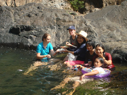 คำตอบที่ 6 ล่องมาด้วยกัน 4 แพ มีนักเรียน AFS ชาวเยอรมัน 2 คนร่วมทริปด้วย เค้าบอกว่าสนุกมากกกกกกกกกก