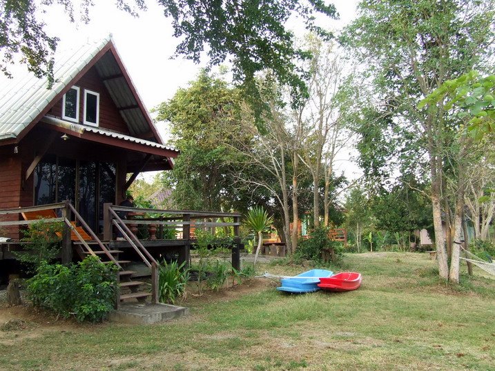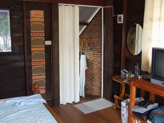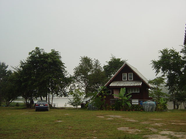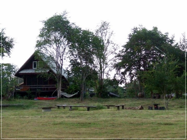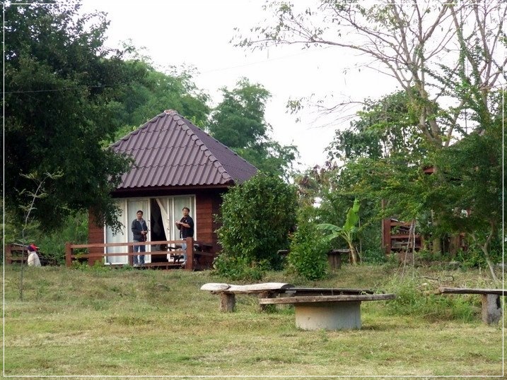 ที่พักบ้านริมน้ำจะห่างจากวัดไปอีก 1 กม. มีป้ายบอก