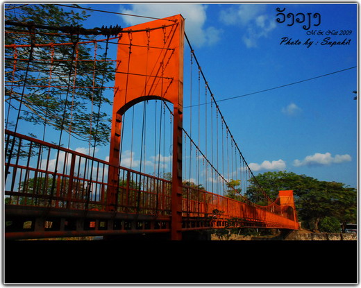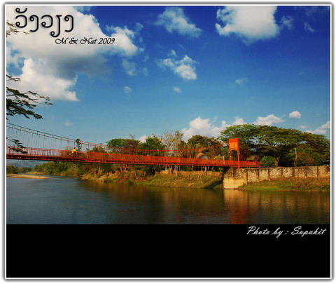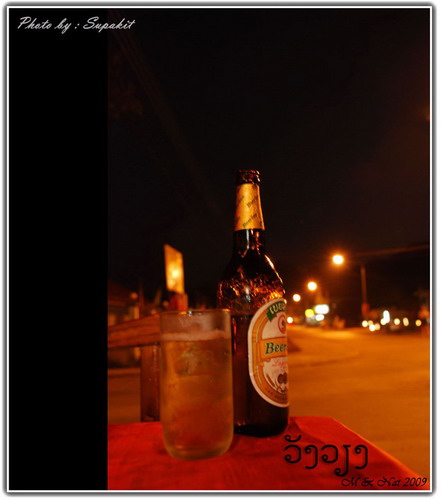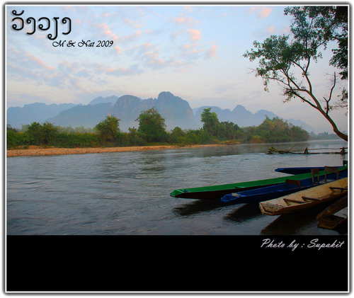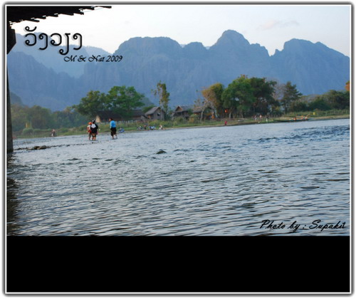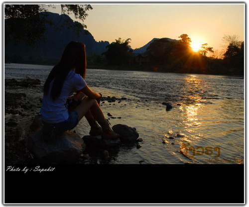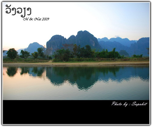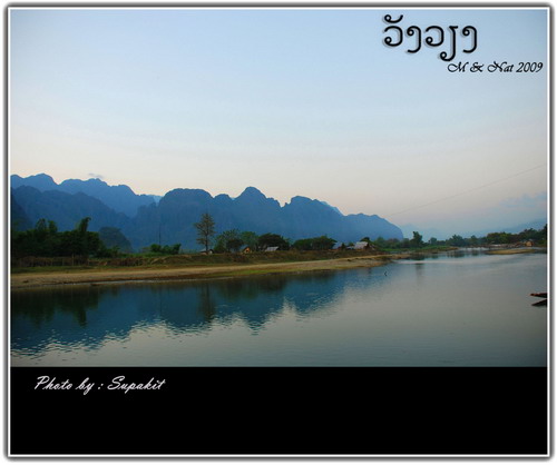 คำตอบที่ 4 เมืองวังเวียง มีแม่น้ำไหลผ่าน ...ชื่อว่า แม่น้ำซอง ............ เราเลือกบ้านพัก ริมแม่น้ำซอง ......ขอบอกว่าบรรยากาศโรแมนติคสุดๆ แต่ถ้าเลือกนอนริมน้ำ ก็ต้องทำใจ เรื่อง ราคาก็จะแพงกว่านอนตึกที่ติดถนน .....เป็นเรื่องธรรมดาค่ะ ....