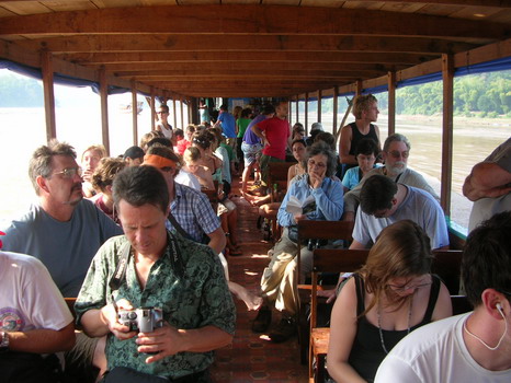 คำตอบที่ 71 ขอตอบคำถามคุณนายหนึ่ง ในข้อที่ 58 นะคะ เมื่อนั่งรถทัวร์มาถึงเชียงของแล้ว ก็ต่อรถสกายแลปไปที่ด่านตม. ทำเรื่องผ่านด่านแล้วก็นั่งเรือหางยาวข้ามฟากไปฝั่งลาว พอไปถึงฝั่งลาวก็ทำเรื่องที่ตม.ลาว เสร็จแล้วก็แลกเงินกีบไว้สักหน่อย (เผื่อจะกินข้าวที่ร้านอาหารก่อนขึ้นเรือ หรือเอาไว้ซื้อของบนเรือพวกขนม น้ำอัดลม เขยลาว) จากนั้นก็ไปติดต่อซื้อตั๋วเรือ แล้วก็รอเวลาเรือออกค่ะ อ้อ! ลืมบอกไปว่าควรจะซื้อข้าวกล่องหรือพกขนมไปกินบนเรือด้วยนะคะ เผื่อหิวเพราะว่าไม่ได้แวะที่ไหน นอกจากแวะค้างคืนที่ปากแบงค่ะ ไม่แน่ใจเหมือนกันว่าล่องเรือไปถึงวังเวียงได้หรือเปล่า เท่าที่รู้ก็ไปแค่หลวงพระบางค่ะ