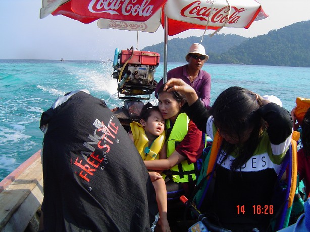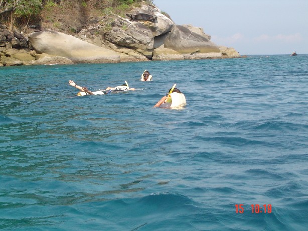 พอดีลาพักร้อนได้หนึ่งอาทิตย์ เลยวางแผนไปพักผ่อนทางใต้ มีสมาชิกคือผม ภรรยา และ ลูก ออกเดินทางเช้าวันเสาร์ไปถึงท่าเรือคุระบุรี พังงา ประมาณ 3 โมงเย็น พักที่โรงแรมในอำเภอ เช้าวันอาทิตย์ ออกเดินทางไป อช.หมู่เกาะสุรินท์โดยเรือ Speed Boat ใช้เวลาประมาณ 1.2 ชั่วโมง