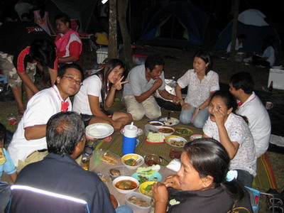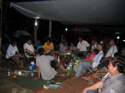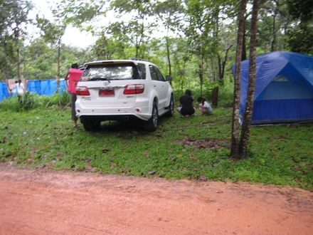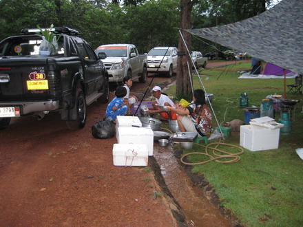 ///การรวมตัวกันท่องเที่ยวแบบคาราวานรถมากๆแบบนี้ ก้อมีปัญหาหลายอย่างครับ เรื่องสถานที่จอดรถ เรื่องการจราจร เรื่องสถานที่กางเต้นท์ แต่ทริปนี้ พวกผมแบ่งหน้าที่กันทำงานครับ บางท่านก้อเข้าพื้นที่ก่อนเพื่อจองสถานที่หรือ มีการประสานงานกับ สมาชิกในพื้นที่ให้จองไว้ก่อน เช่นที่ป่าหินงาม พอดีสมาชิกที่โคราช ทำงานที่กรมป่าไม้อะไรสักอย่างนี่ครับ เป็นผู้ประสานงานจองที่พักไว้ให้ส่วนนี้ต้องขอขอบคุณ ท่านเปา และท่านป้อม สมาชิกวีโก้โคราชมาในที่นี้ด้วยครับ ส่วนอาหารการกินความเป็นอยู่ สมาชิกท่านใดที่มีความพร้อมเรื่องอุปกรณ์เต้นท์ผืนใหญ่ๆ/อุปกรณ์ทำครัวหรือมีฝีมือเรื่องการทำกับข้าวก้อแบ่งหน้าที่กันทำ ครับ ด้านการจราจร+เดินทาง ก้อให้สมาชิกจัดหา วิทยุสื่อสาร (วอแดง)ติดในรถไปด้วยเพื่อให้สามารถรับทราบข้อมูลกับทริปลีดเดอร์ ได้ตลอดเวลาครับ