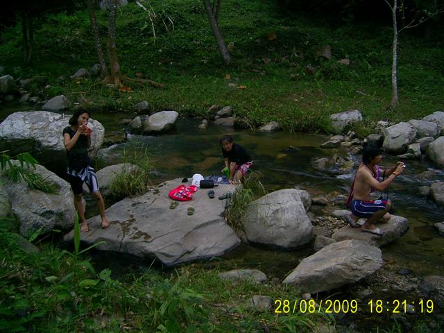 คำตอบที่ 42 กางเต็นแล้วก็อาบน้ำ ซึ่งตอนนี้น้ำในลำธารใสเป็นปกติ