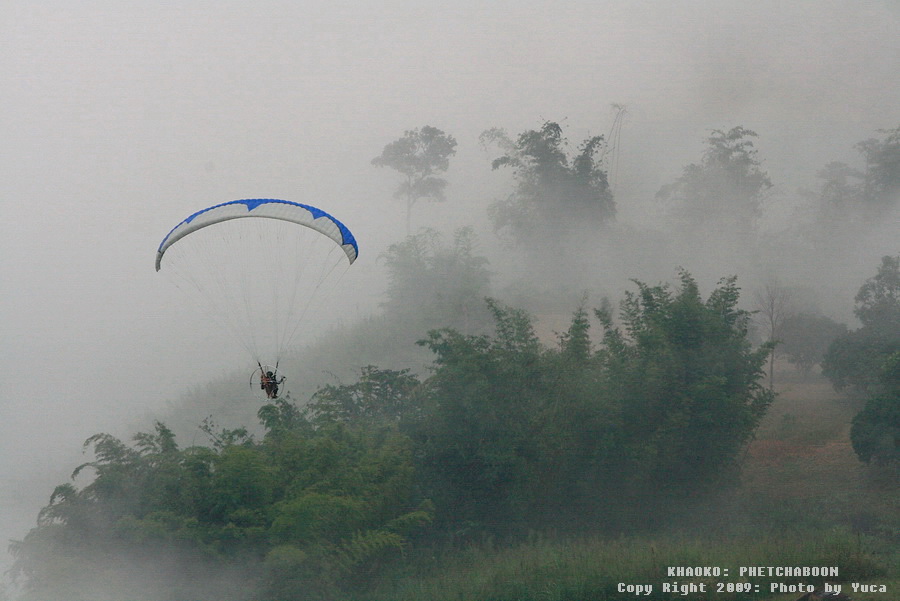 คำตอบที่ 10 มีนักเล่นร่มบินมาโชว์เหยียบยอดหมอก..