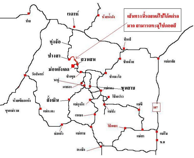 - พี่มะโหนก IZU 291, เส้นทางขึ้นทางสะเมิง ผมถามชาวบ้านแถวนั้น เค้าบอกว่า สภาพเส้นทางใกล้เคียงกับทางเข้า ด้าน อบต.ป่าแป๋ครับ แต่แยกจะเยอะกว่าครับผม