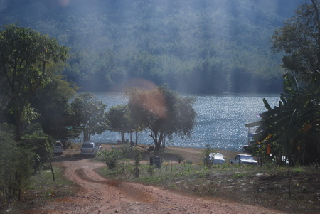 คำตอบที่ 2 ไปแม่ขมิ้นทางบก ได้รสชาตดีมาก ๆ ระยะทาง 30 กม เป็นทางผุ่นซะ 20 ที่เหลือลาดยางอย่างดี 10 กม ครับ แต่ถ้าอยากสบายไปข้ามแพ 2 ครั้งทางศรีสวัสดิ์ดีกว่าครับ เย้ ถึงแล้วห้วยแม่ขมิ้นวันที่ 31 ธันวาคม 2009