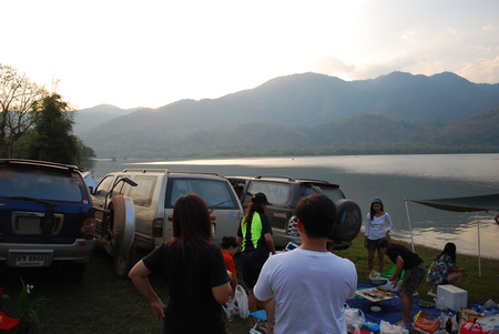 คำตอบที่ 22 บรรยากาศยามเช้าที่ตะเพิงคี่ดีเยี่ยม เพราะมีเพื่อนร่วมทางน้อยครับ วันนั้น 2 มกราคม 2553 มีประมาณ 10 เต้นท์ครับ กำลังดี แต่ขนาดแค่นี้นะครับ น้ำท่าประมาณว่าพอดี ๆ ถ้ามากกว่านี้น้ำท่าจะไม่พอครับ