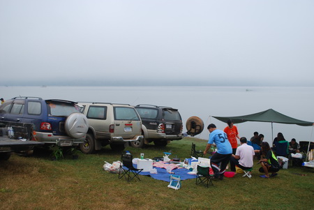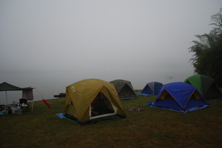คำตอบที่ 21 บรรยากาศยามเช้าที่ตะเพิงคี่ดีเยี่ยม เพราะมีเพื่อนร่วมทางน้อยครับ วันนั้น 2 มกราคม 2553 มีประมาณ 10 เต้นท์ครับ กำลังดี แต่ขนาดแค่นี้นะครับ น้ำท่าประมาณว่าพอดี ๆ ถ้ามากกว่านี้น้ำท่าจะไม่พอครับ
