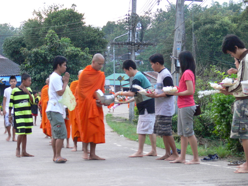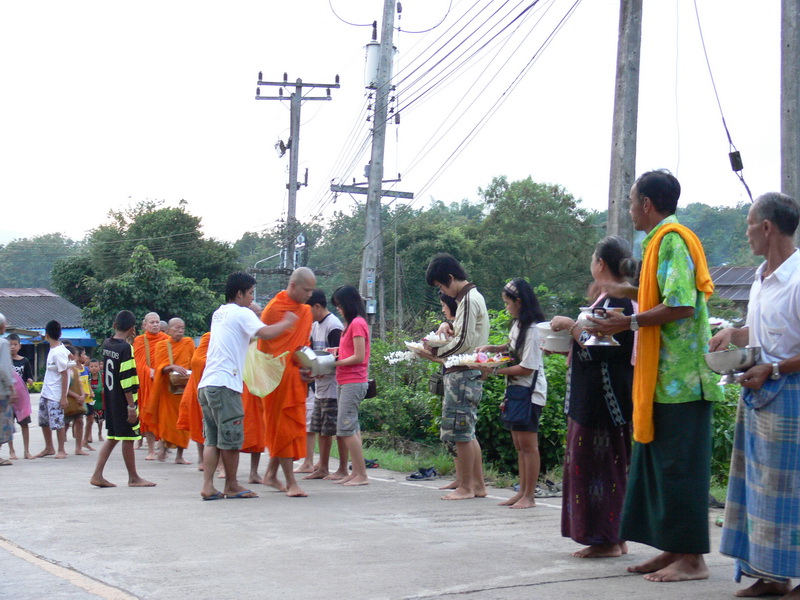 06.00น. ตักบาตร ทำบุญพระบิณฑบาตรในหมู่บ้านมอญ