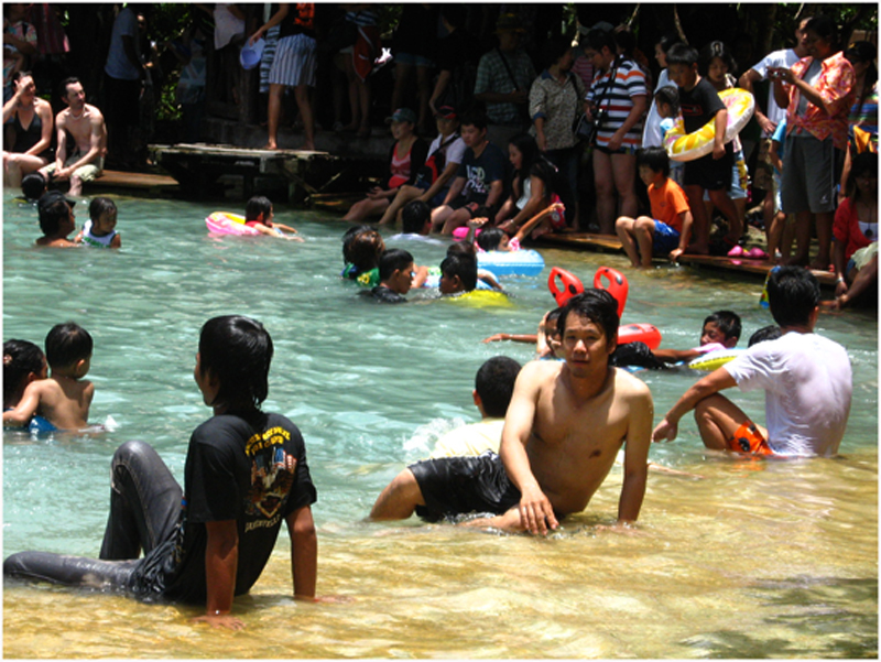 คำตอบที่ 8 ที่หน้าถ้ำเลครับ ต้องจองคิว(คนเยอะมาก) ลำละ 200นั่งไม่เกิน 6 คน