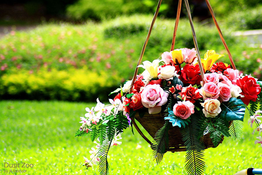 กระเช้าดอกไม้ สีสดสวย แจ่มๆครับ