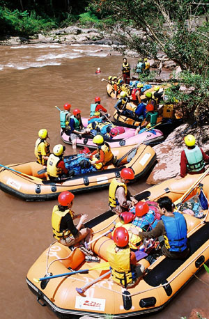 พวกเราออกเดินทางกันกลางดึกของวันที่ 23 ก.ย. 47 เพื่อเข้าโปรแกรมล่องแก่งน้ำว้าตอนกลางในวันที่ 24-26 และต่อด้วยการไปนอนพักให้หายเมื่อยที่ อช.ศรีน่าน ในวันที่ 27
