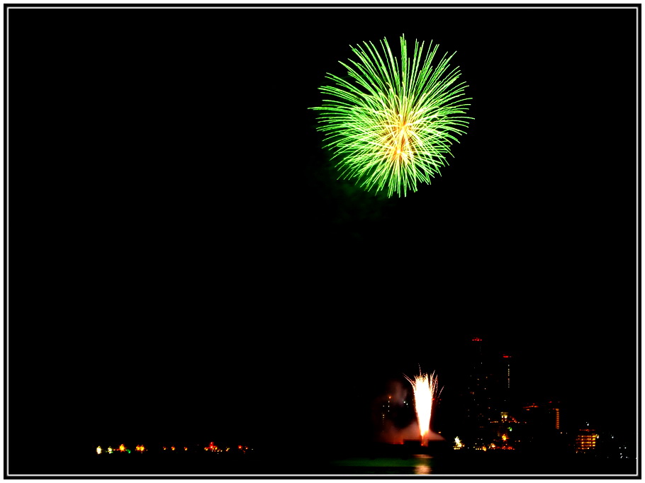 - พลุโชว์ 180 องศา... อันนี้เราสามารถหาตำแหน่งตั้งกล้องได้รอบทิศ สามารถเลือกได้ว่าจะให้ Foreground เป็นอะไร หรือ จะให้พลุมีแสงเรืองรองไปกระทบกับสถานที่ใดสวยๆงามๆบ้าง