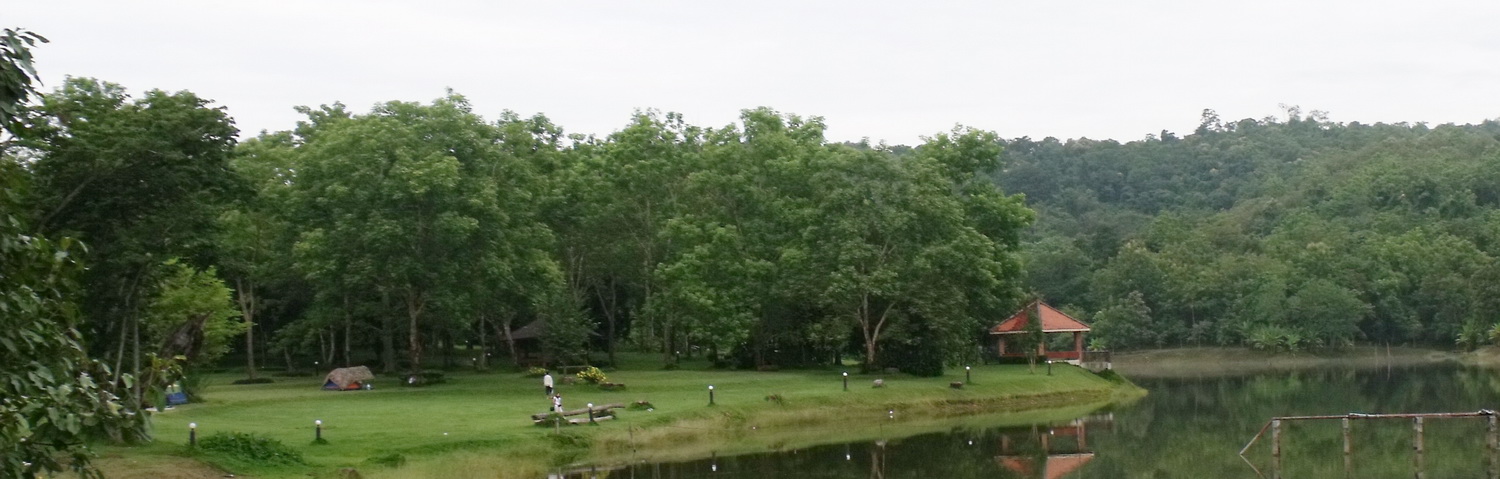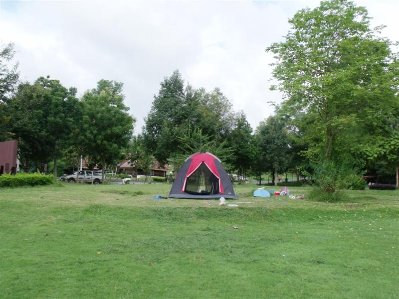 คำตอบที่ 100 ลักษณะกางเต้นท์ใต้ต้นไม้...............แต่อย่าใกล้ศาลาริมน้ำมาก เดี๋ยวจะนอนไม่หลับ เต้นท์นี้ด้านซ้ายจะเป็นถนน อยู่เยื้องกับสำนักงาน มีอาคารศาลามากติดกับสำนักงานหลบฝนสบาย.