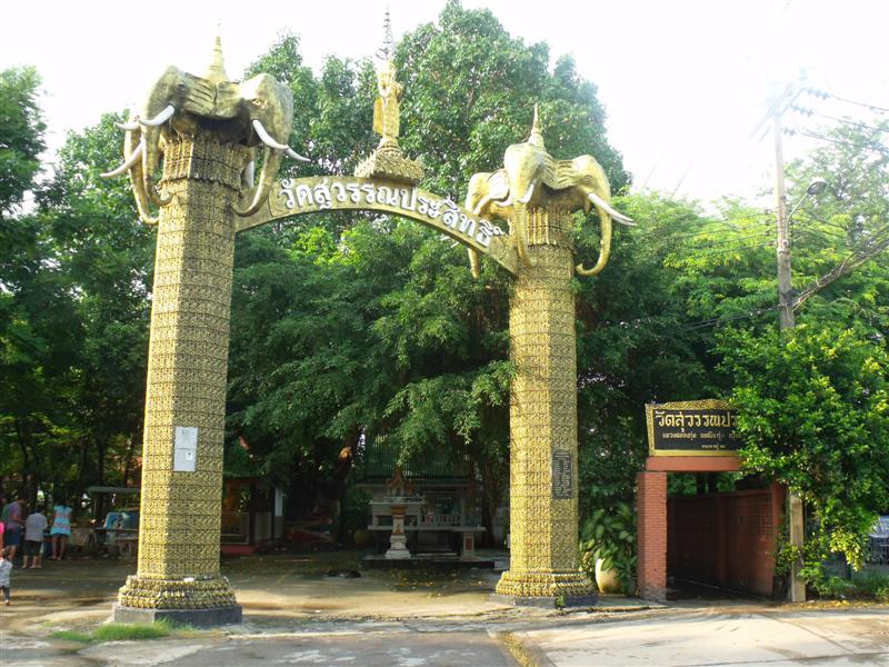 คำตอบที่ 35 วัดสุวรรณประสิทธ์ ตั้งอยู่บนถนนนวมินทร์ อยู่เยื้องๆกับตลาดอินทรารักษ์....... สุวรรณ แปลว่าทอง ดูอะไรก็ออกสีทองไปหมด หรือแม้แต่ต้นไม้.....