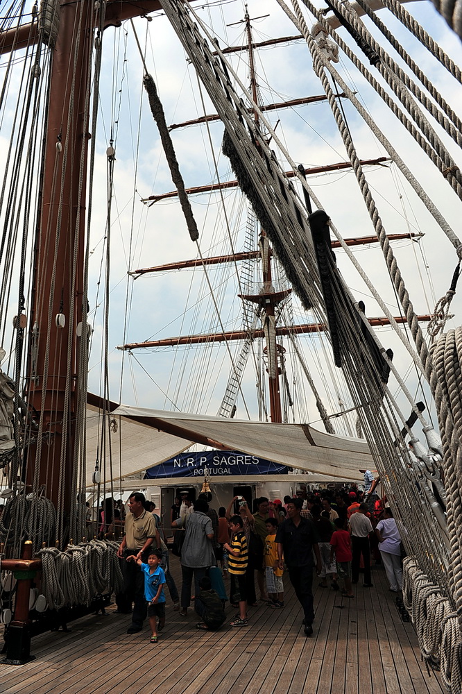 ประวัติคราวๆเท่าที่ทราบครับ ปัจจุบันเป็นเรือฝึก สร้างเมื่อปี 1937 ที่อู่ต่อเรือ Blohm & Voss, Hamberg ประเทศเยอรมันนี ชื่อเดิมของเรือลำนี้ Albert Leo Schlageter (1937-1948) หลังเยอรมันนีแพ้สงคราม เรือลำนี้ได้ตกเป็นของ อเมริกา โดยปริยาย อเมริกาได้ขายเรือลำนี้ให้กับบราซิล (ปี 1948) ราคา $ 5,000 และได้เปลี่ยนชื่อเรือใหม่เป็น Guanabara (1948-1962) ต่อมาเรือนี้ได้ถูกขอซื้อจากโปรตุเกต ในราคา $ 150,000 และเปลี่ยนชื่อ เป็น SAGRES ตั้งแต่นั้นมา