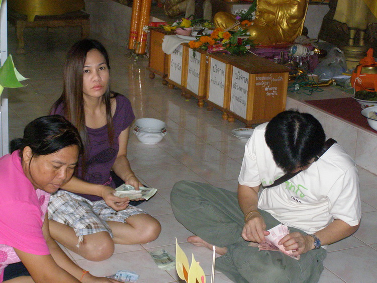 คำตอบที่ 3 เช้าแล้ว 7 โมงกว่า ก็ออกกันไปที่วัดชื่อว่าวัดเวฬุวรรณมั้ง ขออภัยนะถ้าจำชื่อวัดผิด คุณประสิทธิ์ เพื่อนรุ่นน้องแกเป็นเจ้าบ้านเจ้าถิ่น ก็ช่วยกันจัดงานพิธีการ ผมเองไม่ค่อยเป็นงานนัก คอยเป็นกองหลังสนับสนุนดีกว่า แต่ก็ส่งตัวแทนไปเป็นคนคอยช่วยนับเงินกฐินด้วย แกชอบน่ะ..เรื่องนับเงินนับทองงี้