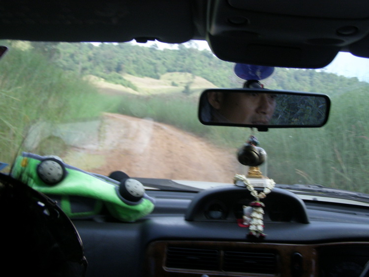 คำตอบที่ 7 พ่อบูกำลังขับรถมิตซูบิชิสีขาวลุยทางขึ้นไปเลยดั้น น้องบู่บู๋ก้อช่วยลุ้นมากถึงกับมองออกมาดูวิวทิวทัศน์ดีก่า เวียนหัวจัง