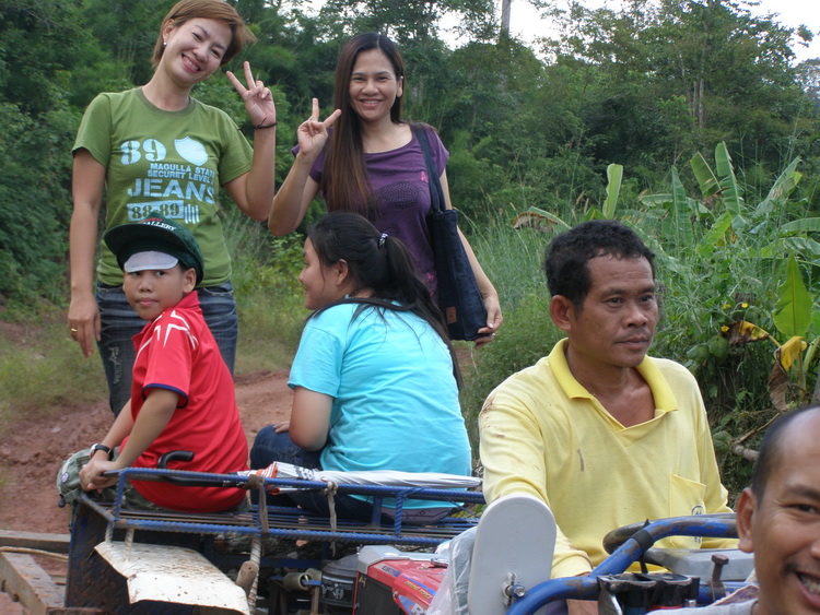 คำตอบที่ 12 อิ่มกันแล้วก็รีบออกเดินทางต่อไปที่เลยดั้น ตอนนี้ก้อปาเข้าไป 3 โมงได้แล้ว เจอสภาพทางเป็นเลนสีส้ม ต้องจอดรถทิ้งไว้แล้วลงเดินกัน แต่โชคดีมาก ๆ เจอพี่ที่เพิ่งขี่รถอีแต๊กอีแต๋น (ยี่ห้อคูโบต้า) 2 คัน กำลังจะกลับ แกถามว่าจะไปไหนกัน พวกเราบอกว่าจะไปดูเลยดั้นกัน แกก็ บอกว่าให้นั่งรถแกไปกัน พวกเราดีใจกันใหญ่เลย แรกๆยิ้มๆ แต่พอเรานั่งกันไปแล้วต้องเกิดอาการเสียวคับ เพราะวิ่งไปโยกกันไปคับ