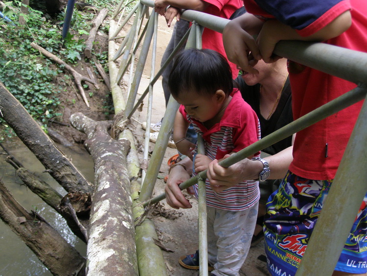 คำตอบที่ 40 เราออกมาจากถ้ำแล้ว น้องบูบู๋กำลังดูน้ำตกที่ไหลผ่านสะพาน