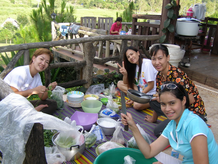 คำตอบที่ 45 เหมือนเดิมคับ..สาวแม่บ้านทั้งหลายจัดแจงทำมาหากินกันเลย..อาหารมื้อเย็นนี้คือ เห่าดง , ต้มยำ , หมูทอด , ไส้กรอกนึ่ง ,ส้มตำ และอื่นๆ อีกมากมาย