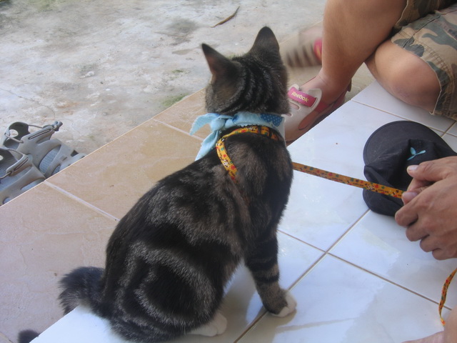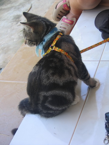 ก็เพราะวันนั้นน้องเหมียวไม่ได้อยู่บ้านตัวเองครับ...ไปร่วมบริจาคของช่วยน้ำท่วมที่โคราชก็เลยต้องล่ามไว้เดี๋ยวแอบหนีไปเล่นน้ำ...