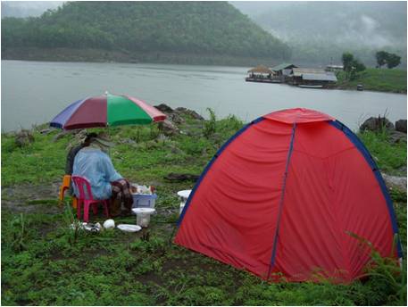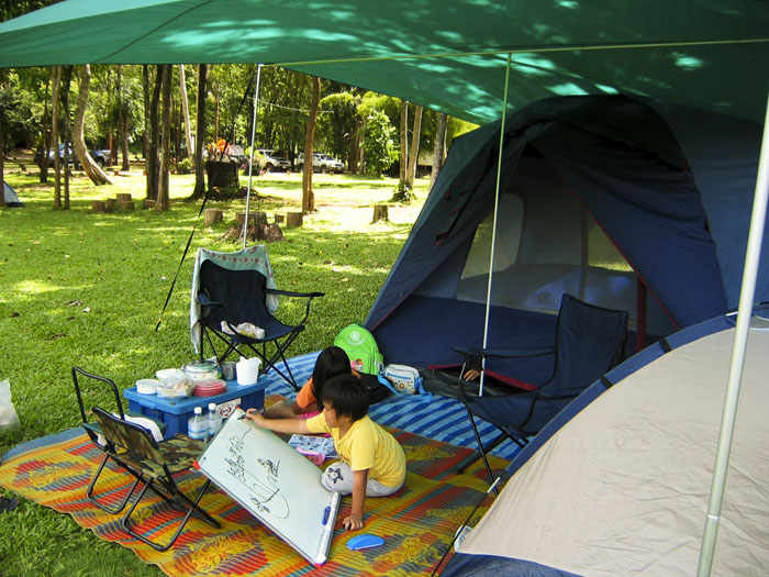 กางเต้นท์นอนเย็นๆ ให้เด็กๆ เล่นน้ำที่คลองไพบูลย์