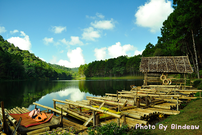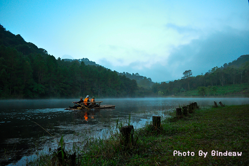 ตรงบริเวณทางเข้าหมู่บ้านรวมไทนี้ก็จะมีจุดตรวจอีกหนึ่งจุดครับ ซึ่งจุดนี้ก็จะตรวจใบอนุญาตเหมือนกันครับ เสร็จแล้วเค้าก็จะบอกให้เราเอารถไปจอดที่ลานวัดท้ายหมู่บ้าน แล้วไปกางเต้นท์ตรงบริเวณข้าง ๆ สันอ่างเก็บน้ำปางอุ๋งครับ