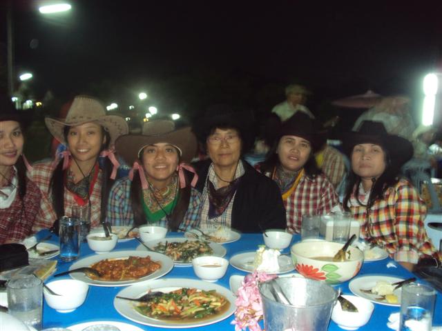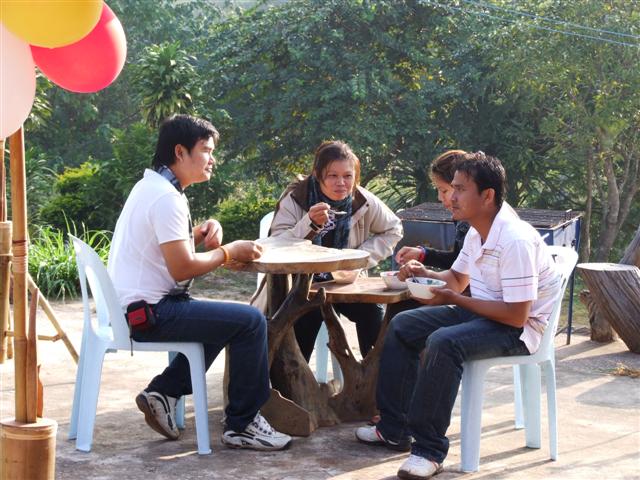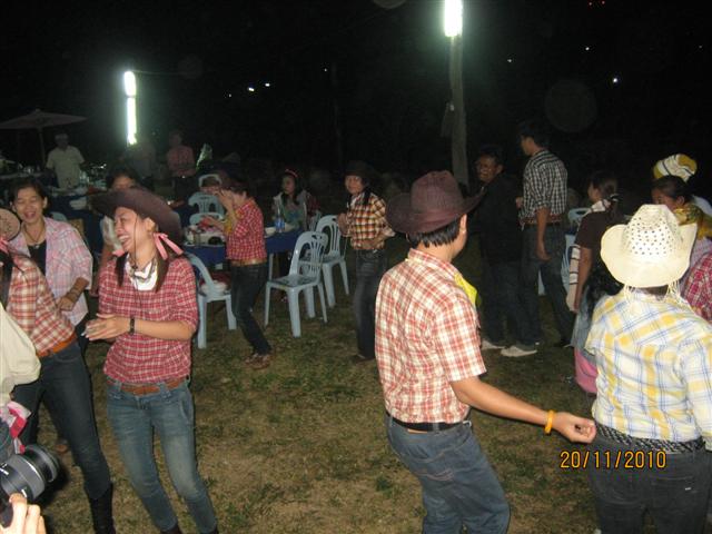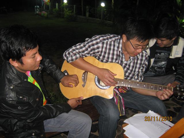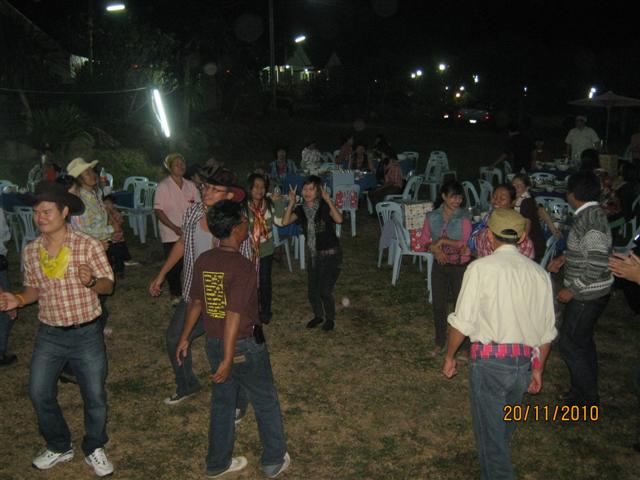เมื่องานเลี้ยงต้องเลิกรา แต่เวลาของเรายังไม่หมด เมื่อเก็บสถานที่กันเรียบร้อยแล้วโดยทีมงานคอนวอยส์ ก็ขอกวนชาวบ้านเค้านิดนึง ขอเกากีตาร์ร้องเพลงให้เข้ากับบรรยากาศซักหน่อย เวลาก็ประมาณ 4 ทุ่มเศษได้ กว่าจะเลิกก็ปาเข้าไปเกือบตีหนึ่ง (ดีว่าชาวบ้านเค้าไม่ลุกขึ้นมาให้รางวัล ซึ่งอาจจะเป็นรองเท้าซักข้าง ถ้วยซักใบ จานซัก 2 ใบ .. ถ้ารองเท้าขอ 2 ข้างนะค่ะข้างเดียวไม่ต้องค่ะเดี๋ยวไม่ครบคู่... 555+)