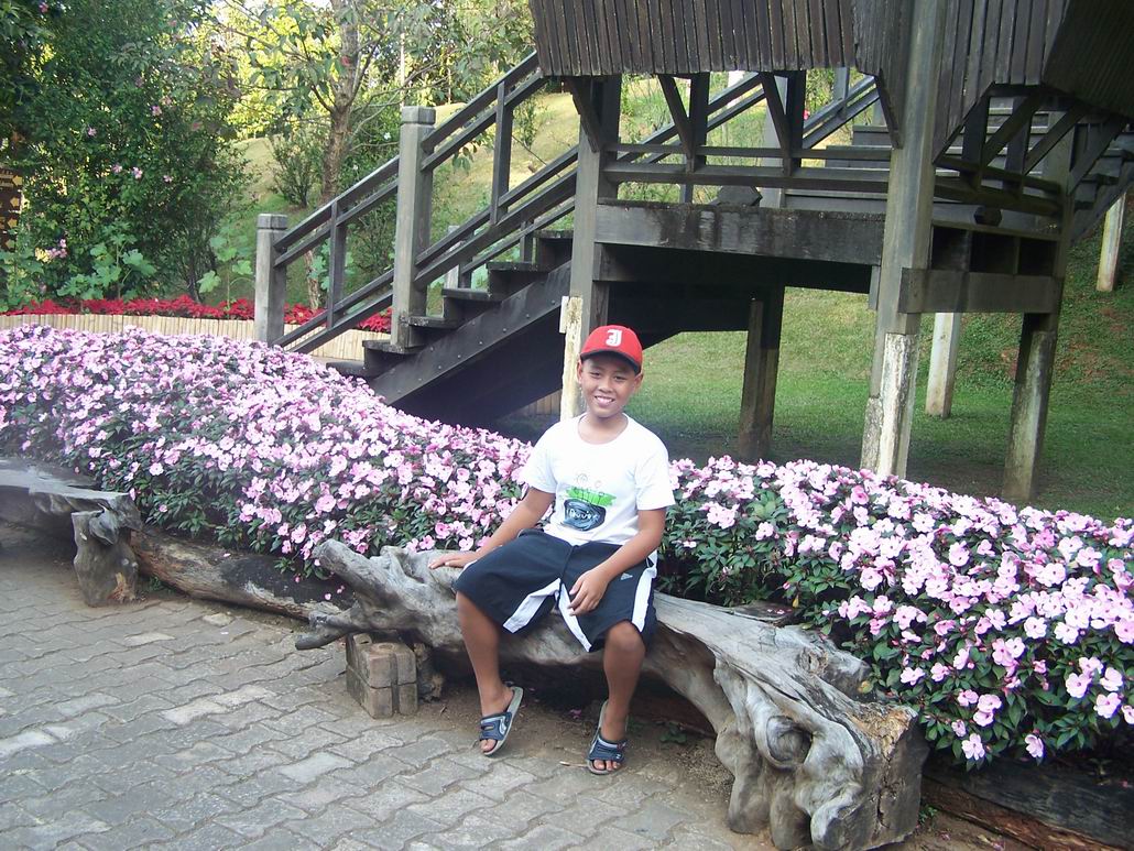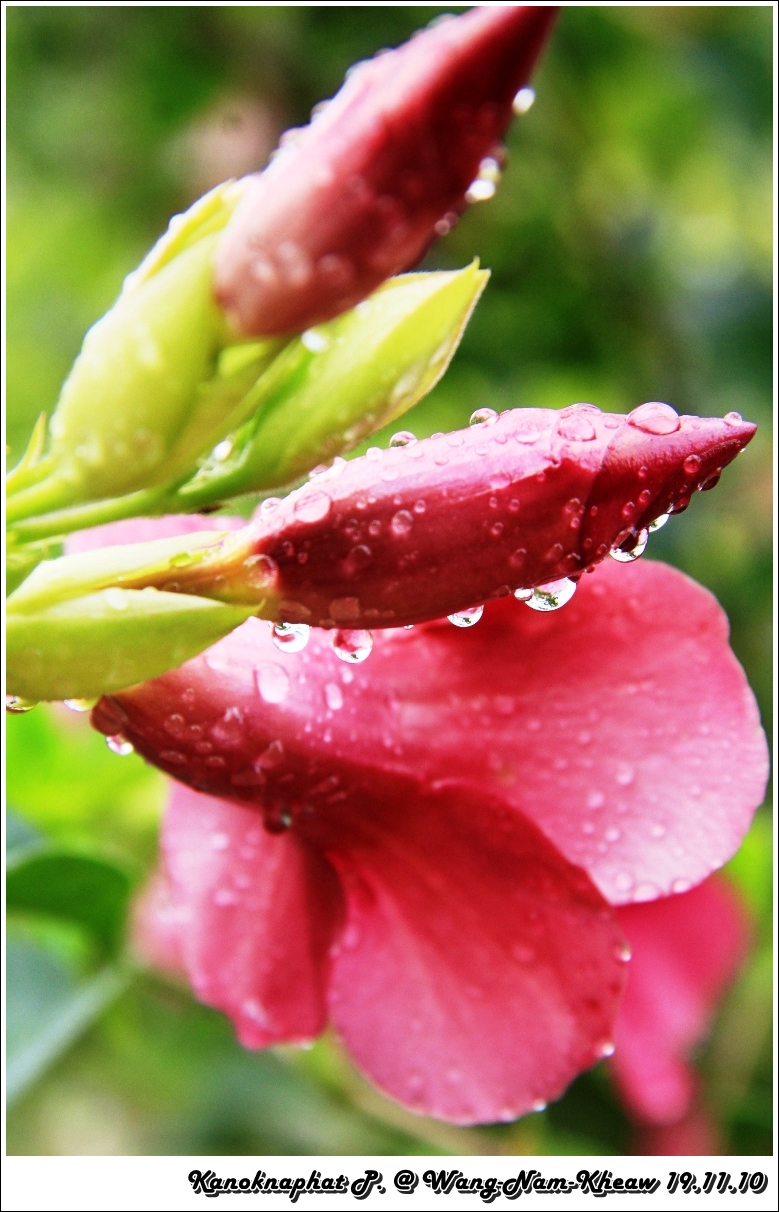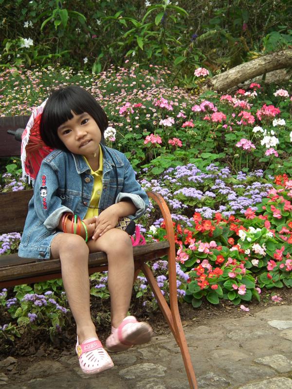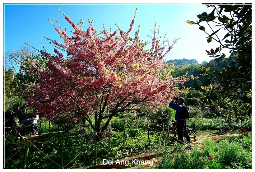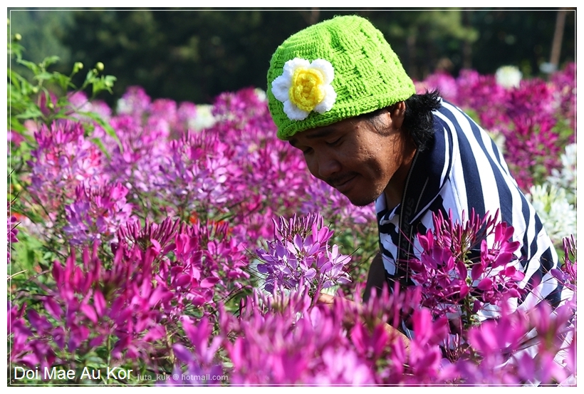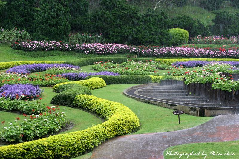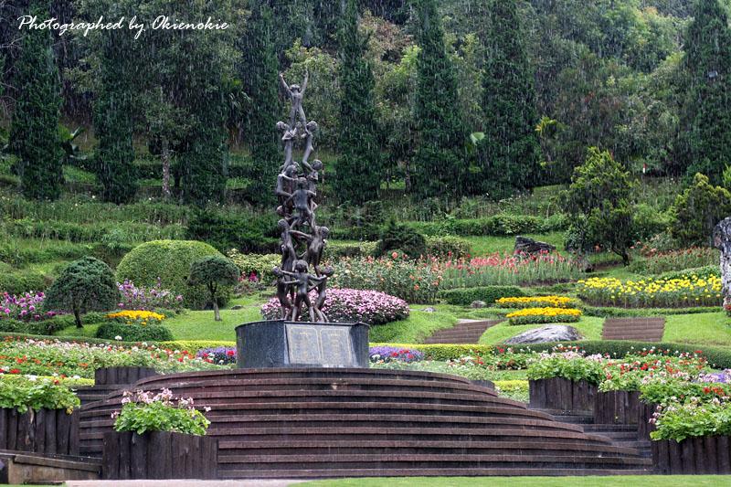 ภาพนี้บนดอยตุง ฝนตกหนักค่ะ ยืนถ่ายภาพอยู่แป๊ปนึง ฝนก็ตก ต้องไปยืนใต้ร่มไม้เพราะคิดว่าแป๊ปเดียว ทีไหนได้เปียกเป็นลูกหมา กล้องก็พาลเปียกไปด้วย ต้องรีบเอาซุกไว้ใต้เสื้อ วิ่งผ่านลานสุดท้าย ไปหยุดอยู่ที่ซุ้ม แต่ลมพัดแรงก็แทบจะเอาไม่อยู่ละอองน้ำพัดมาโดนอีก... สุดท้ายต้องวิ่งลุยฝนทั้งตัวเปียกพยายามไปให้ถึงข้างบน...จังหวะวิ่งหยุดๆ ก็บันทึกภาพไปด้วย