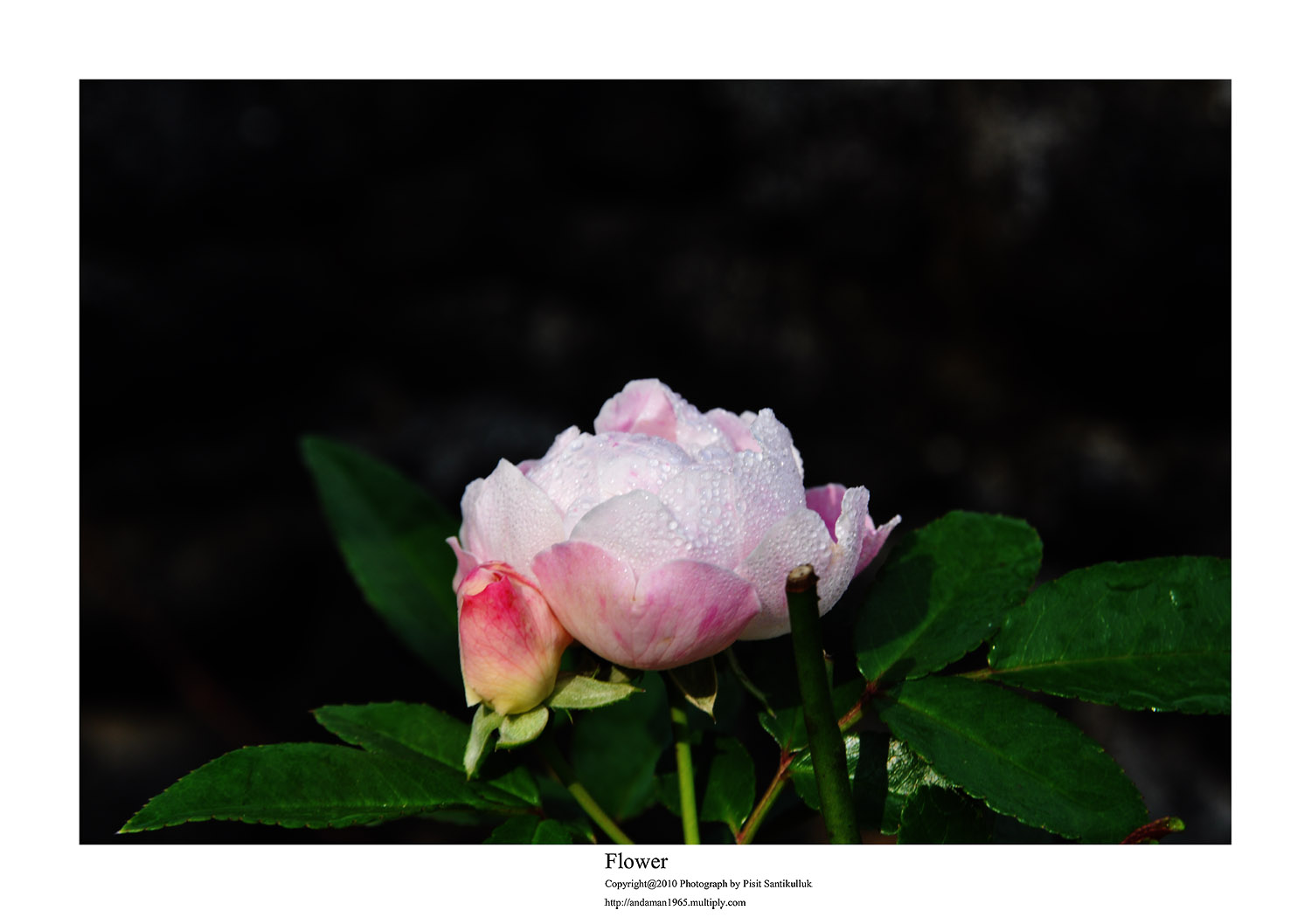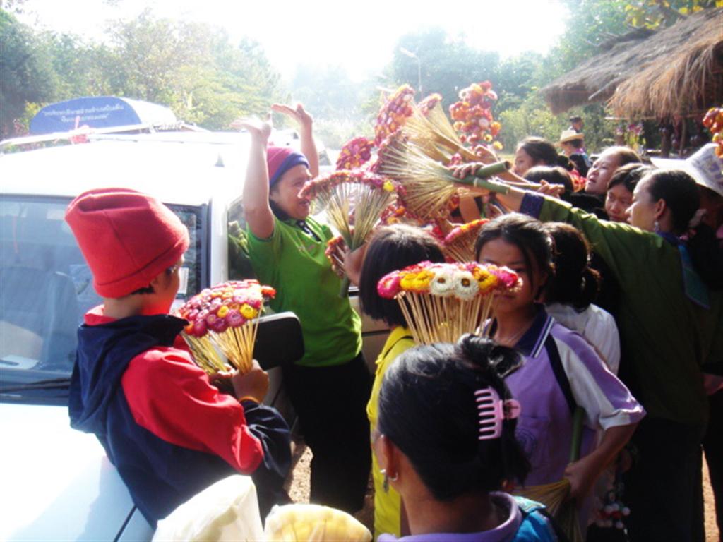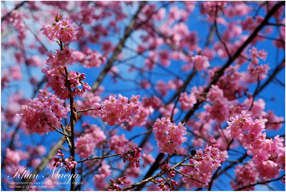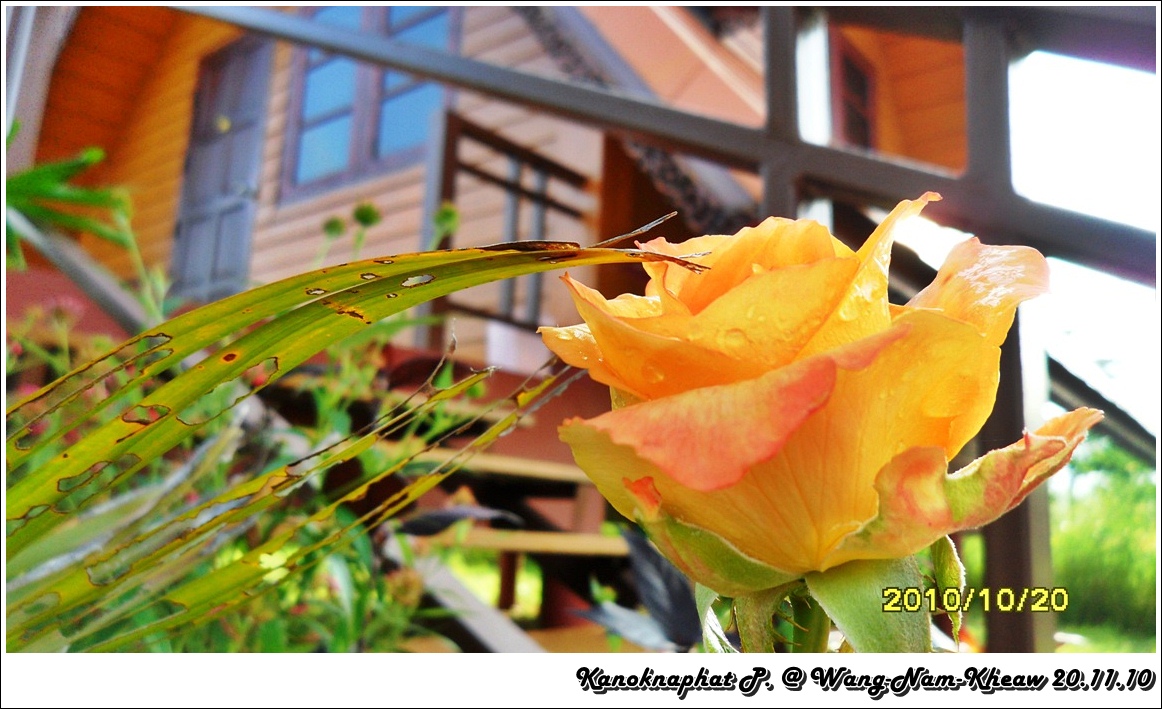 ภาพนี้บนดอยตุง ฝนตกหนักค่ะ ยืนถ่ายภาพอยู่แป๊ปนึง ฝนก็ตก ต้องไปยืนใต้ร่มไม้เพราะคิดว่าแป๊ปเดียว ทีไหนได้เปียกเป็นลูกหมา กล้องก็พาลเปียกไปด้วย ต้องรีบเอาซุกไว้ใต้เสื้อ วิ่งผ่านลานสุดท้าย ไปหยุดอยู่ที่ซุ้ม แต่ลมพัดแรงก็แทบจะเอาไม่อยู่ละอองน้ำพัดมาโดนอีก... สุดท้ายต้องวิ่งลุยฝนทั้งตัวเปียกพยายามไปให้ถึงข้างบน...จังหวะวิ่งหยุดๆ ก็บันทึกภาพไปด้วย