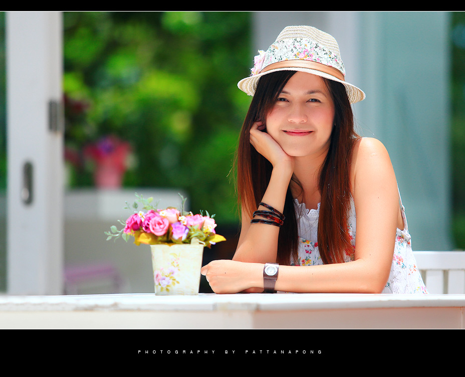 ไม่ถนัดถ่าย portrait จริงๆ แต่ไว้จะศึกษาเพิ่มเติม รูปนี้ถ่ายกันเล่นๆ ตอนไปเที่ยวครับ เห็นมีดอกไม้บนโต๊ะด้วย ไม่ทราบว่าเข้าพวกหรือเปล่า