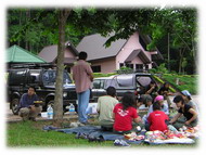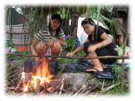 คำตอบที่ 21 หลังจากเล่นน้ำก็เป็นเรื่องของอาหารการกิน ท่ามกลางหูที่ต้องคอยฟังเสียงผิดปรกติ อรรถรสที่หาที่ไหนไม่ได้นอกจากป่านี้